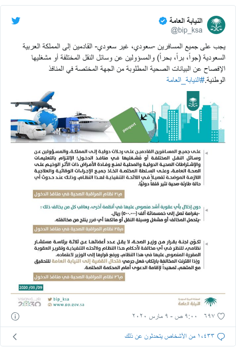 الأربعاء 30 رجب 1441 هـ 25 مارس 2020 ksa 12 05 gmt 09 05. وتاريخ بداية الحجر الصحي في السعودية والإجراءات الاحترازية بدأت منذ ظهور أولى الحالات وذلك يوم الثاني من مارس عام 2020 حيث سجلت وزارة الصحة السعودية حتى الآن 235111 حالة إيجابية ويوجد منها. ثلاثينية تطلب الحجر على زوجها في السعودية لهذا السبب. إجراءات جديدة في السعودية.