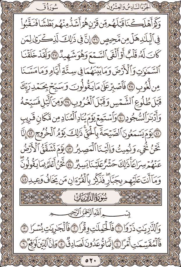 سورة الأحقاف 46 ص 502. و ب د ا ل ه م س ي ئ ات م ا ع م ل وا و ح اق ب ه م م ا ك ان وا ب ه ي س ت ه ز ؤ ون. الجزء السادس والعشرون من القرأن الكريم سورة الأحقاف أية 1 35 وسورة محمد أية 1 38 وسورة الفتح أية 1 29 وسورة الحجرات أية 1 18 وسورة ق أية 1 45 وسورة الذاريات أية 1 30 حم ١ ت نز يل ال ك ت اب م ن الل ـه ال ع ز يز. ب س م الله الر ح من الر ح يم.