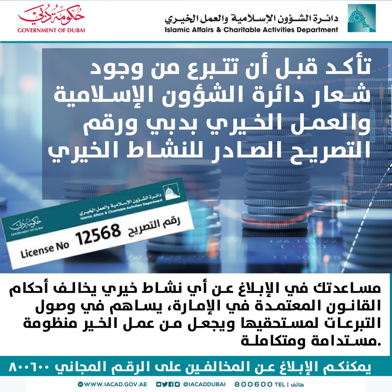 هيئة الاتصالات تدعو للإبلاغ عن رسائل الاحتيال عبر الرقم 330330 تاريخ البيان 1440 03 26 الموافق 04 12 2018. ووفرت وزارة البيئة والمياه والزراعة في أوقات سابقة حراس غابات في المكاتب والوحدات بجميع المناطق وخصصت الرقم المجاني 8002472220 للإبلاغ عن المخالفات البيئية. تطالب الإدارة العامة للإقامة وشؤون الأجانب في دبي الجمهور بالتواصل معها عبر الهاتف المجاني 8005111 للإبلاغ عن أية معلومة أو طلب المساعدة في أي من خدمات الإدارة. أجاب حساب الأمن العام عن الأسئلة الشائعة التي تتردد بشأن دخول.