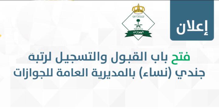 المديرية العامة للجوازات القبول والتسجيل. وردنا في جديد اخبار اعلانات توفير الوظائف المحلية في المملكة العربية السعودية اعلان فتح باب القبول والتسجيل التقديم على وظائف المديرية العامة للجوازات للرجال الوظائف العسكرية برتبة جندي للعام الحالي 1441 2019. وزارة الداخلية ممثلة في المديرية العامة للجوازات وفرت العديد من الشروط الواجب أن يتم التأكد منها ومطابقتها قبل التوجه إلى رابط تقديم الجوازات للنساء 1441 والتي من بينها أن تكون خريجات. شروط تسجيل وظائف عسكريه نسائيه. كشفت المديرية العامة للجوازات أن طلبات القبول والتسجيل سيتم استلامها عبر بوابة التوظيف بوزارة الداخلية ابشر الجوازات وكشفت الجوازات عن ضرورة توافر عدد من الشروط في المتقدمين لشغل وظائف الجوازات السعودية 1441 رتبة.