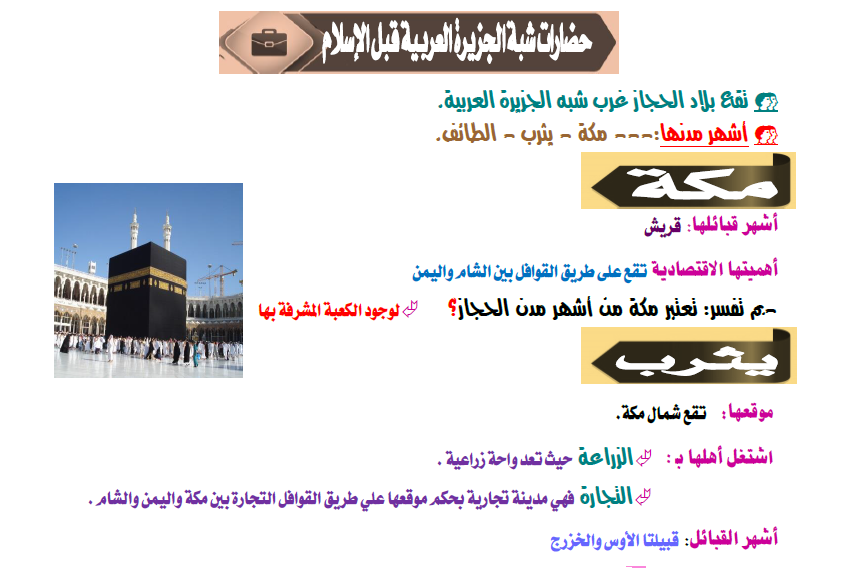شرح درس حضارات شبه الجزيرة العربية قبيل ظهور الإسلام التاريخ في الترمين الصف الثاني الثانوي نفهم