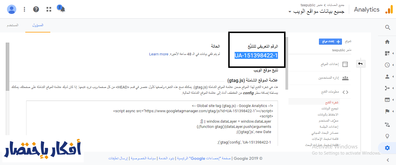 رقم تعريف تتبع الموقع في Google Analytics