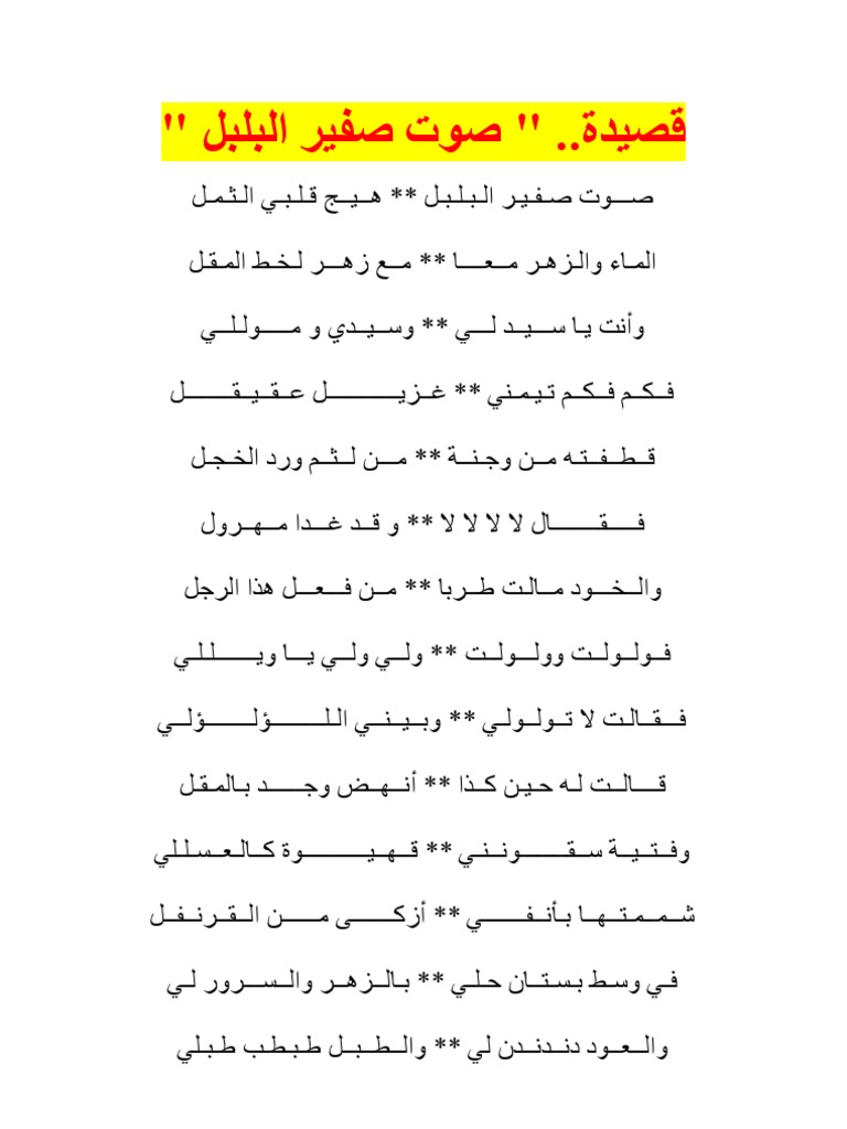 صوت صفير البلبل مكتوبة قصيدة صوت صفير البلبل عتاب وزعل