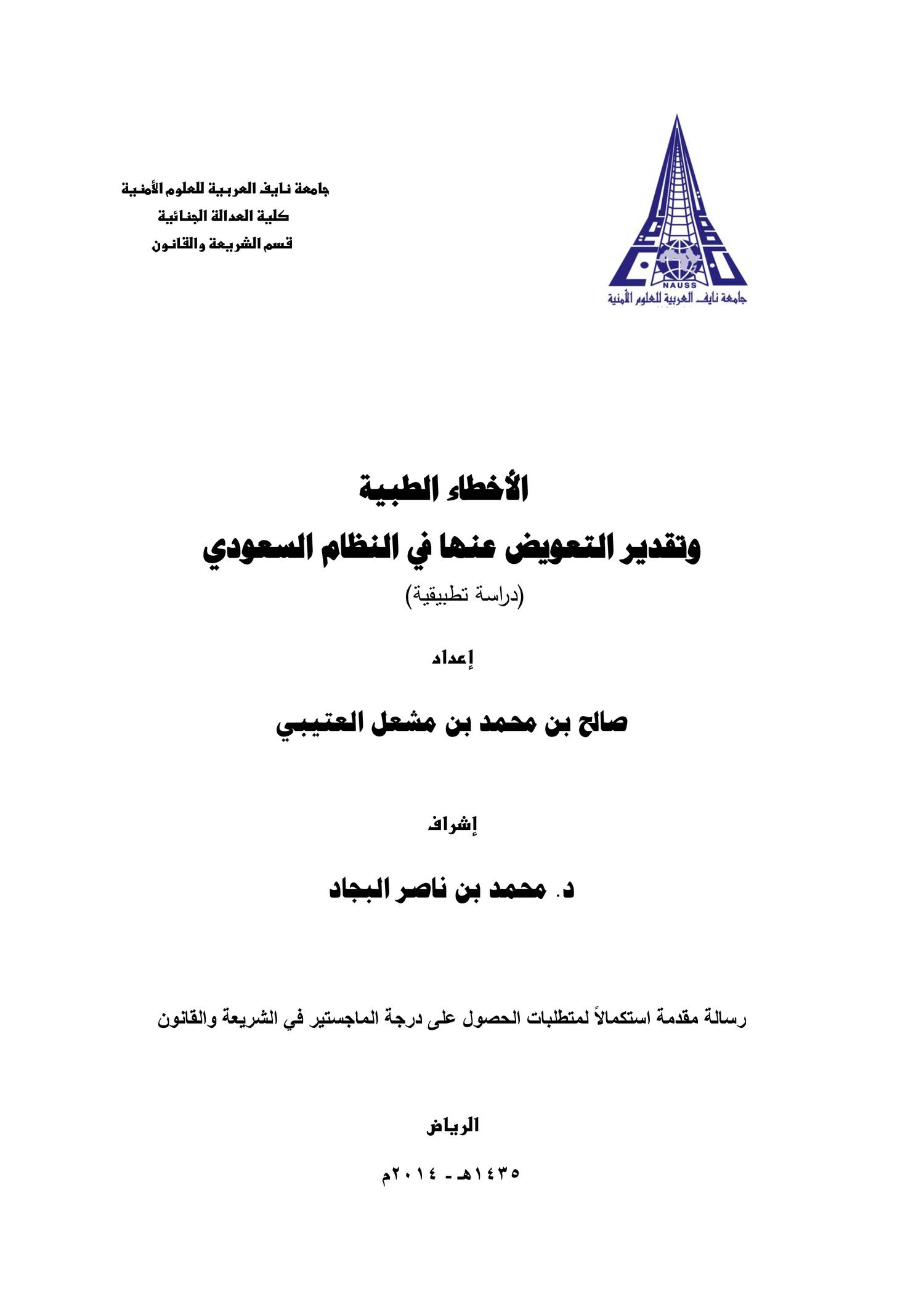 نظام الاخطاء الطبية في السعودية. الخطأ في العلاج أو نقص المتابعة الجهل بأمور فنية يفترض الإلمام بها إجراء العمليات الجراحية التجريبية وغير المسبوقة. 1 النظر في الأخطاء المهنية الصحية التي ترفع بها مطالبة بالحق الخاصة دية تعويض ارش. في الوقت الذي ألزمت فيه الهيئة السعودية للتخصصات الصحية الأطباء من جهتها في وقت سابق بمختلف تخصصاتهم بالتأمين ضد الأخطاء المهنية الطبية إلا أن بعض الممارسين الصحيين مازالوا يتعرضون لمشاكل جراء عدم التزامهم بتجديد. الأخطاء الطبية من منظور قانوني عمر عامري الحدادي تنشر الصحف اليومية أخبارا عن اخطاء طبية بعضها أخطاء بسيطة وبعضها قد يودي بحياة من كان يقصد المشفى للعلاج وإنهاء آلامه فنسمع عن نسيان مقص أو شاش في بطن مريض أو تخدير.